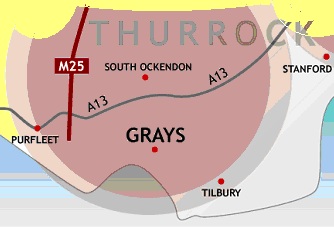 Grays, Stanford le Hope, Corringham, Horndon, Chadwell St Mary, Tilbury, Aveley, Ockendon, Little Thurrock, Orsett.